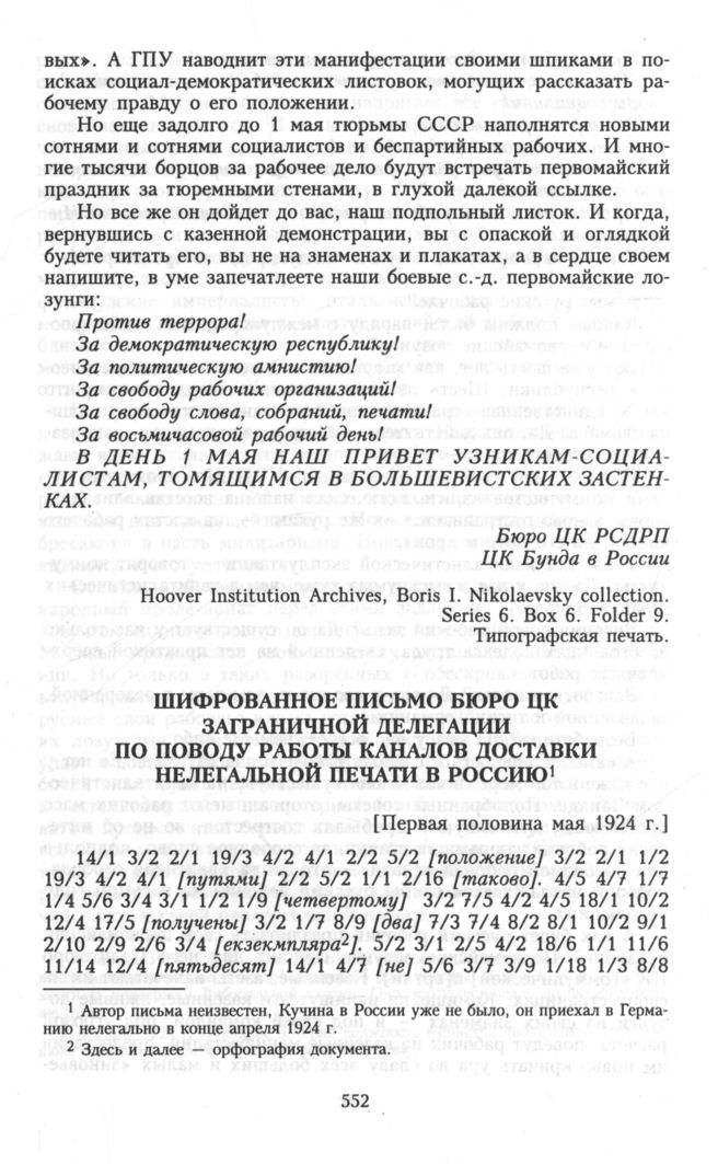 Главная Серия «Политические партии России. Конец XIX – первая треть ХХ века... Меньшевики в 1903—1931 гг. Меньшевики в большевистской России. 1918—1924. Меньшевики в 1922—19... Документы Шифрованное письмо Бюро ЦК Заграничной делегации по поводу работы к...