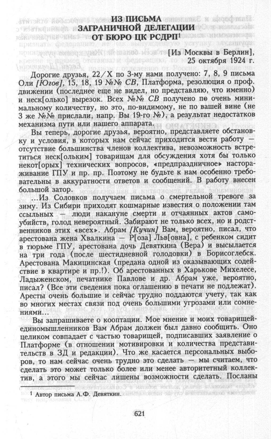 Из письма Заграничной делегации от Бюро ЦК РСДРП. [Из Москвы в Берлин], 25 октября