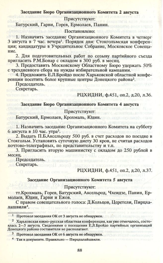 Протоколы заседаний ОК и Бюро ОК с 3 июля по 9 августа. Заседание Организационного Комитета 5 августа