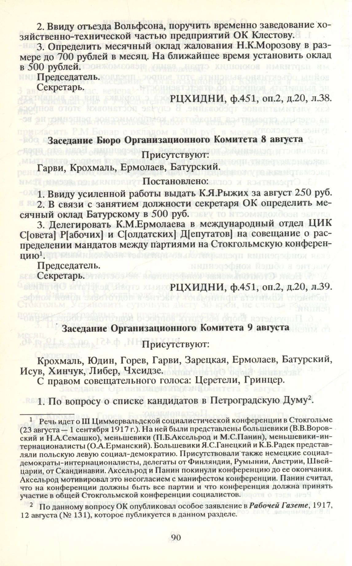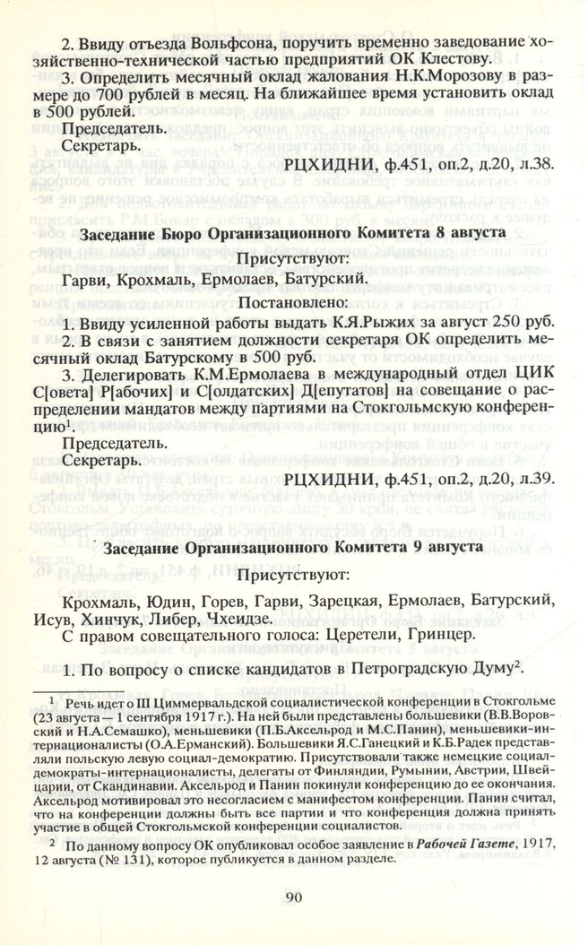 Протоколы заседаний ОК и Бюро ОК с 3 июля по 9 августа. Заседание Бюро Организационного Комитета 8 августа