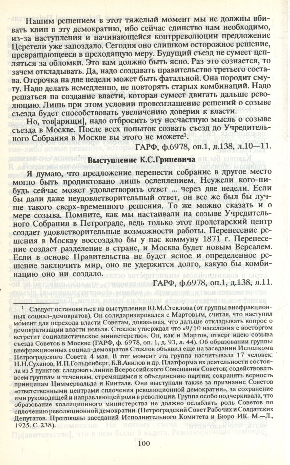 Из материалов объединенного заседания ВЦИК Советов Рабочих и Солдатских Депутатов и Исполнительного Комитета Всероссийского Совета Крестьянских Депутатов 4 июля. Выступление К.С.Гриневича