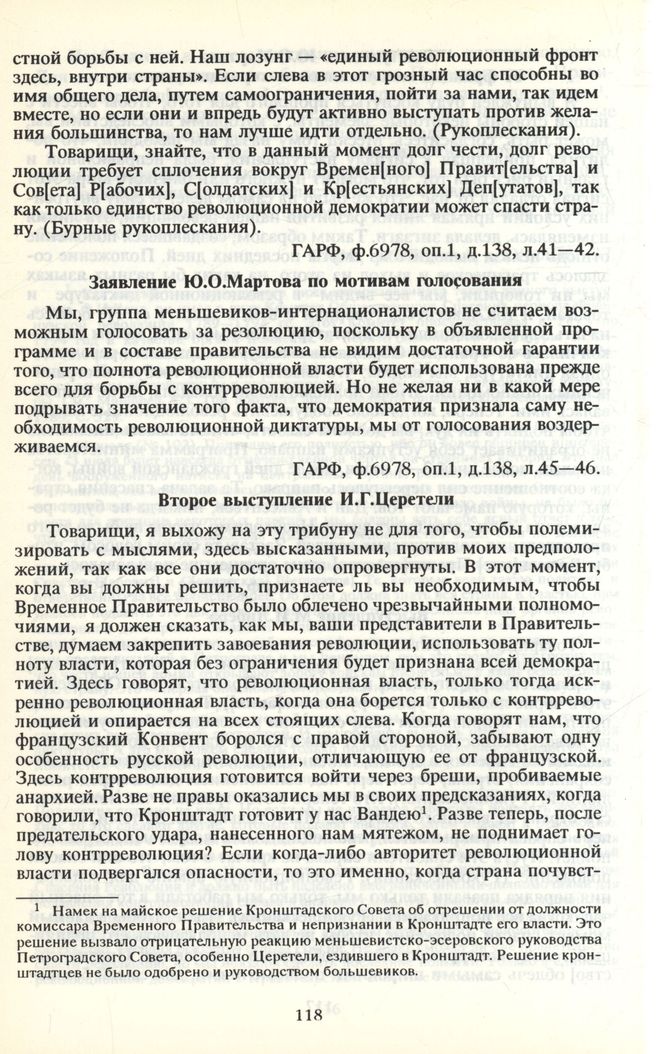 Из материалов объединенного заседания ВЦИК Советов Рабочих и Солдатских Депутатов и Исполнительного Комитета Всероссийского Совета Крестьянских Депутатов 9 июля. Заявление Ю.О.Мартова по мотивам голосования
