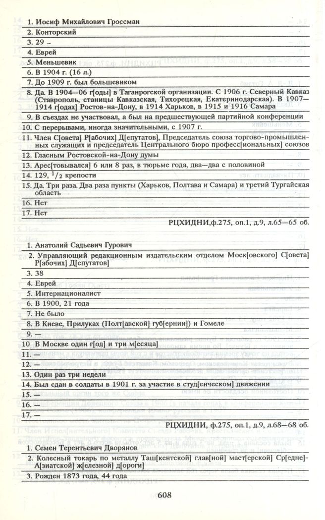 Социал-демократические партии -- РСДРП -- Меньшевики -- Анкеты делегатов