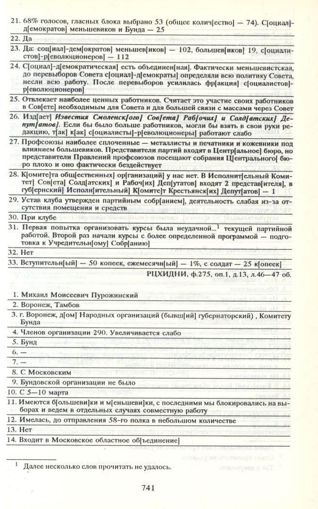 Главная Серия «Политические партии России. Конец XIX – первая треть ХХ века... Меньшевики в 1903—1931 гг. Меньшевики в 1917 году. В 3 т. Т. 2. От июльских событий до корнило... Документы Анкеты организаций, представленных на съезде. Михаил Моисеевич Пуро...