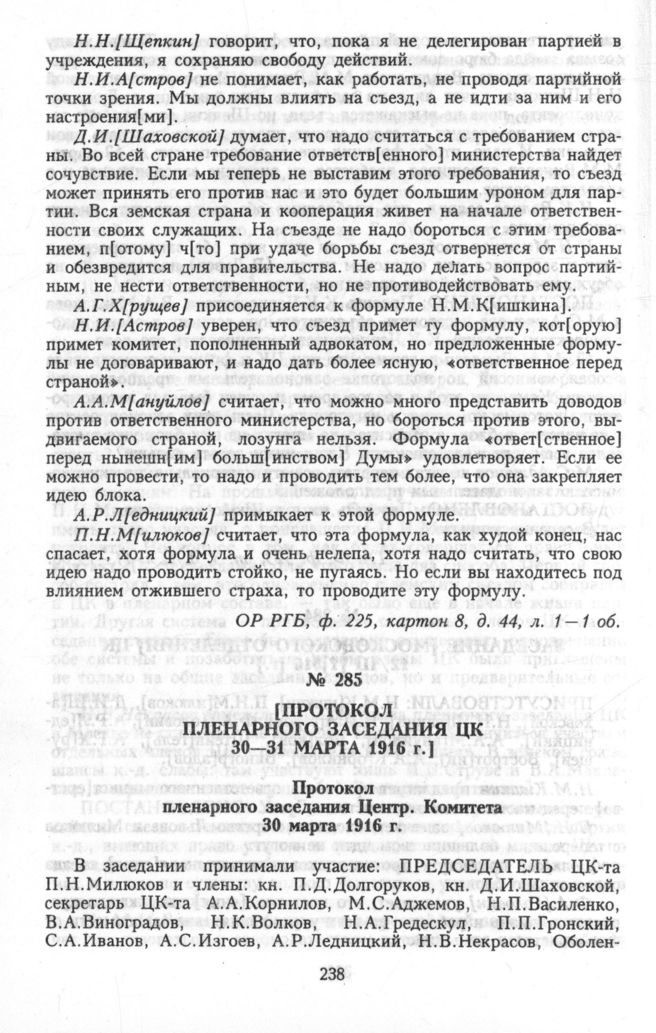 Протоколы Центрального Комитета конституционно-демократической партии. [Протокол пленарного заседания ЦК 30-31 марта 1916 г.]