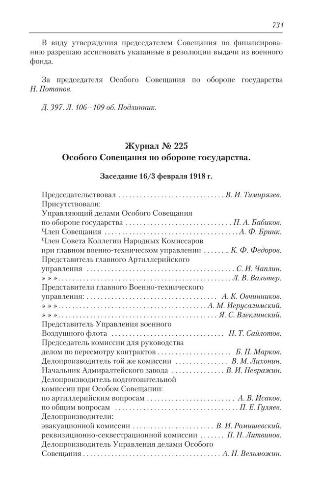 Журнал № 225 Особого Совещания по обороне государства. Заседание 16/3 февраля 1918 г. // РГВИА СССР. Ф. 369. Оп. 1. Д. 384. Л. 158–174. Подлинник. Д. 397. Л. 110. Подлинник. Д. 397. Л. 111–112. Подлинник. Д. 397. Л. 114. Подлинник. Д. 397. Л. 115. Подлинник.
