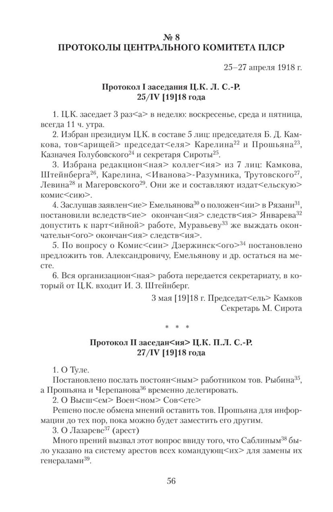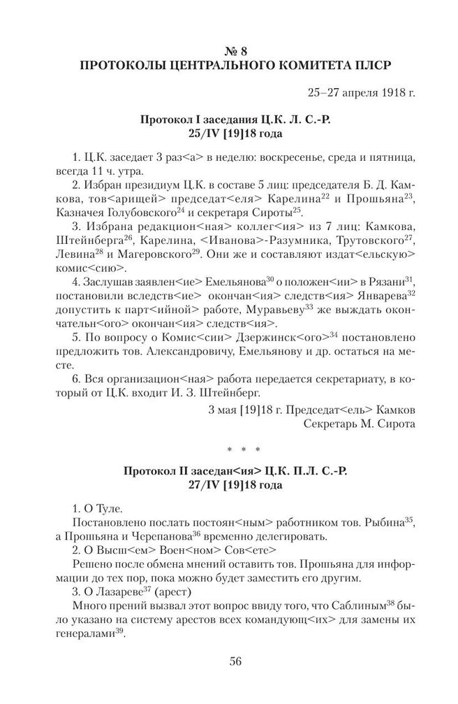 Протоколы Центрального Комитета ПЛСР. 25–27 апреля 1918 г.