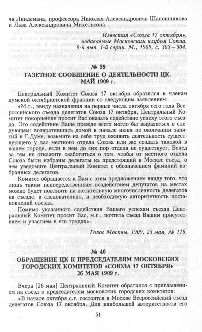Партия «Союз 17 октября». Протоколы съездов, конференций и заседаний ЦК. 1905—1915 гг. В 2-х томах. Т. 2. Протоколы III съезда, конференций и заседаний ЦК. 1907—1915 гг. — М.: РОССПЭН, 2000.