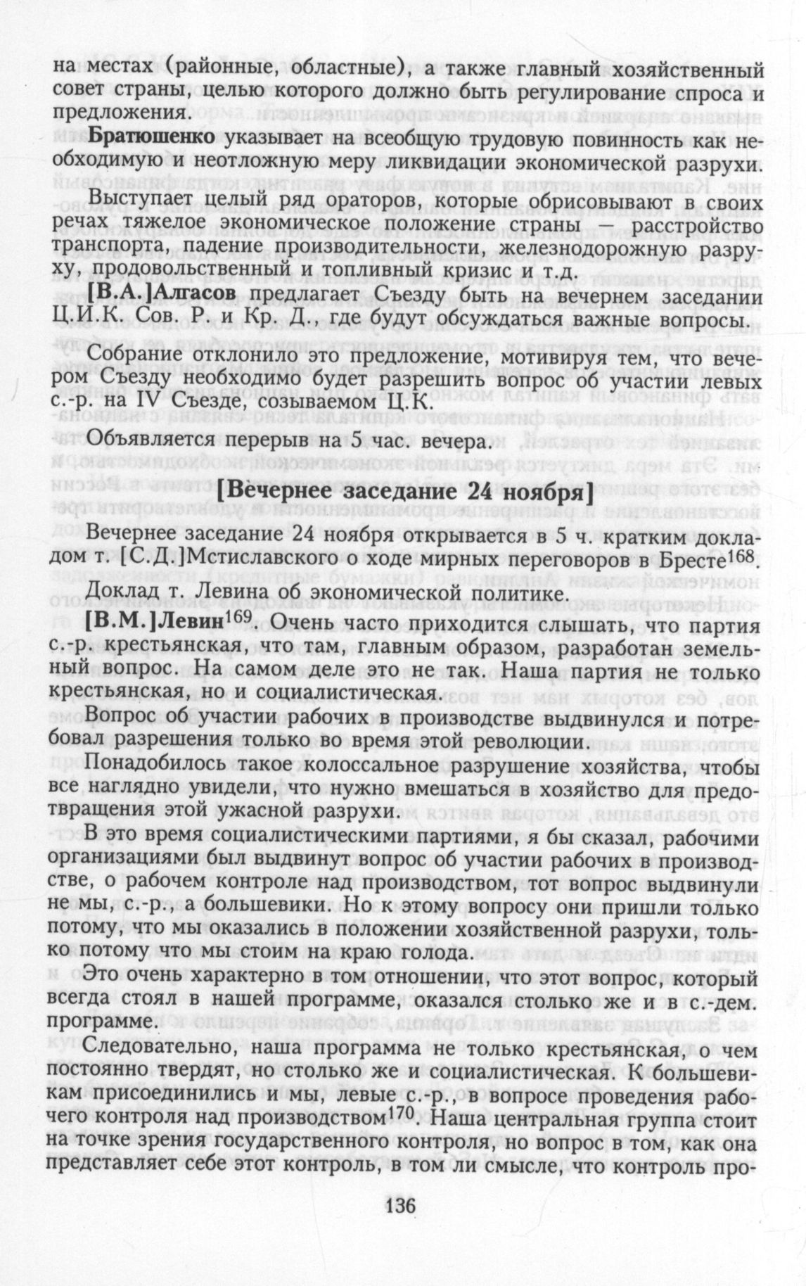 Протоколы первого съезда партии левых социалистов-революционеров (интернационалистов). [19 — 28 ноября 1917 г. Петроград]. [Вечернее заседание 24 ноября] // Протоколы первого съезда Партии левых социалистов-революционеров (интернационалистов). М.: Издательство «Революционный Социализм». 1918.