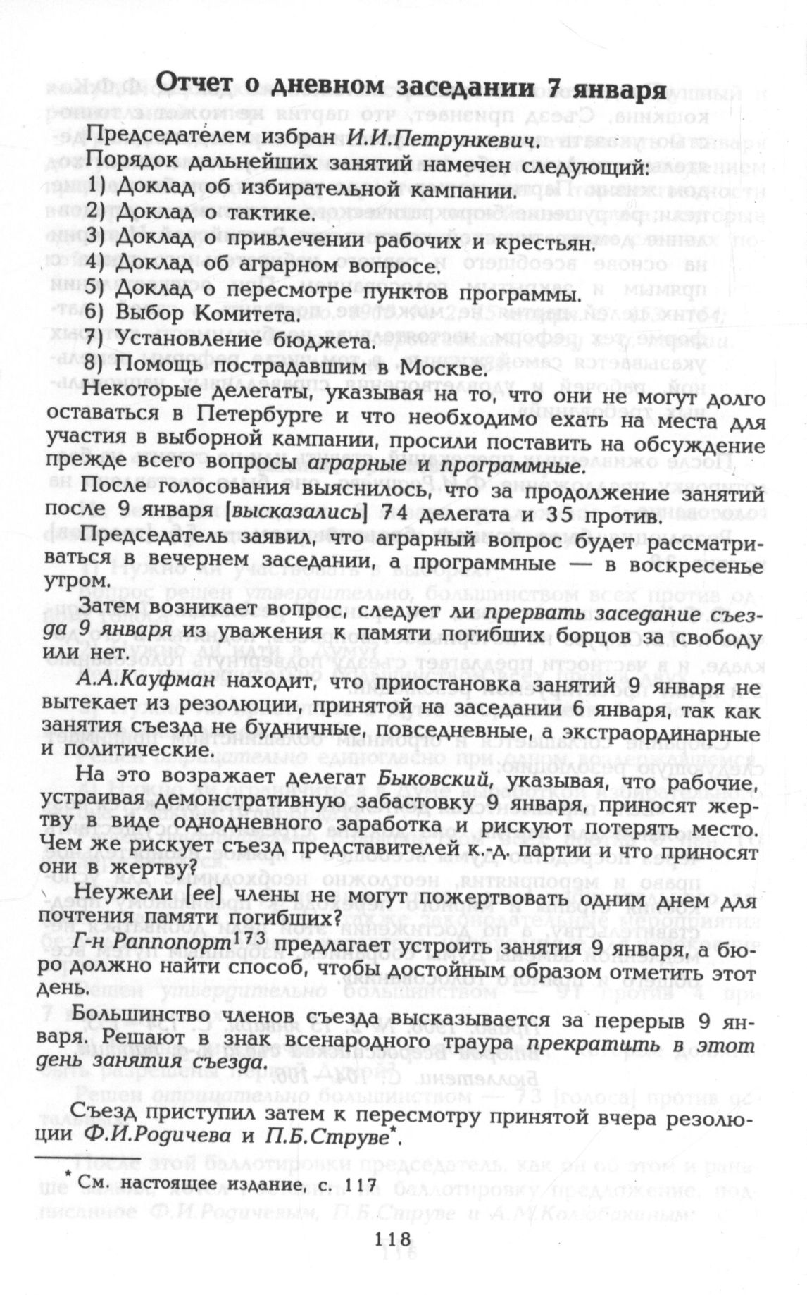 Второй съезд конституционно-демократической партии. 5-11 января 1906 года. Отчет о дневном заседании 7 января // Второй Всероссийский съезд конституционно-демократической партии. Бюллетени. С. 107—115.