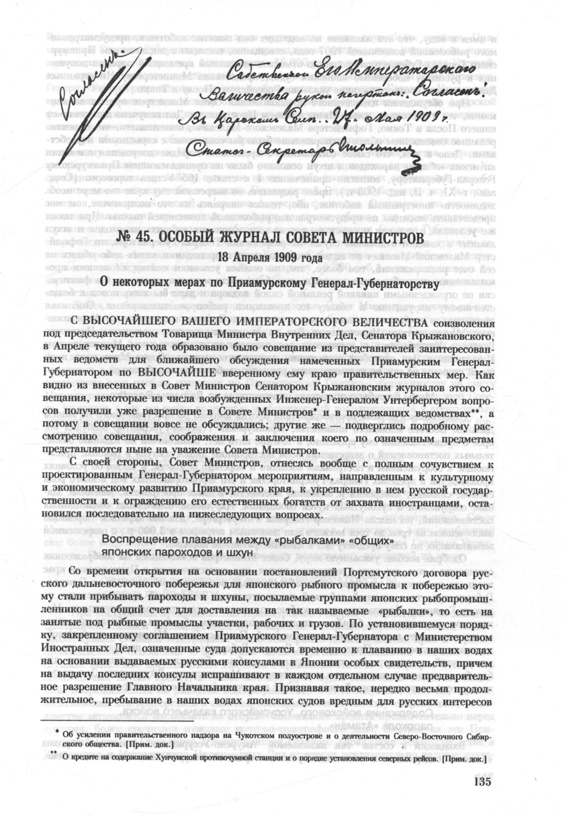 Особый журнал совета министров. 18 Апреля 1909 года. О некоторых мерах по Приамурскому Генерал-Губернаторству