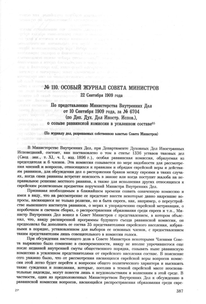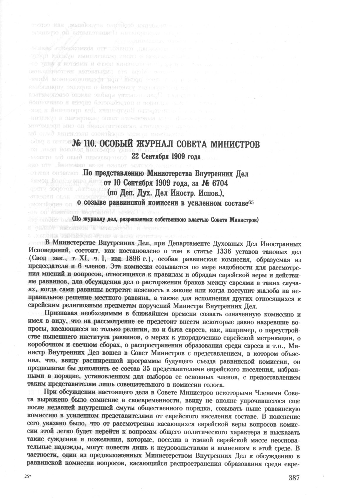 Особый журнал совета министров. 22 Сентября 1909 года. По представлению Министерства Внутренних Дел от 10 Сентября 1909 года, за № 6704 (по Деп. Дух. Дел Иностр. Испов.), о созыве раввинской комиссии в усиленном составе