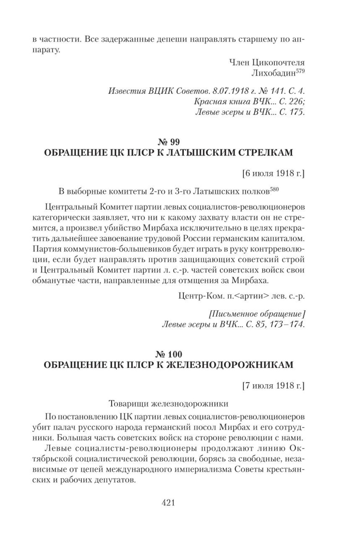 Обращение ЦК ПЛСР к латышским стрелкам. [6 июля 1918 г.] // [Письменное обращение] Левые эсеры и ВЧК… С. 85, 173–174.