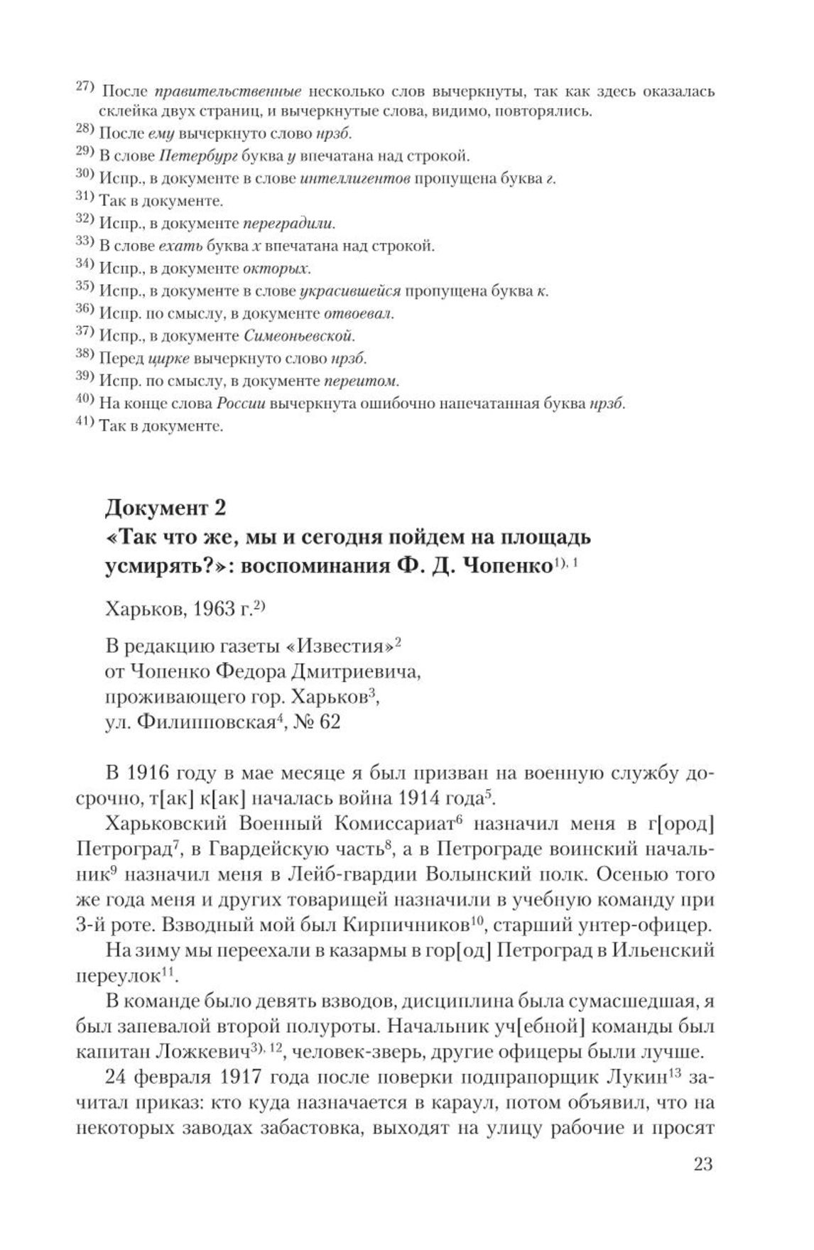 «Так что же, мы и сегодня пойдем на площадь усмирять?» : воспоминания Ф. Д. Чопенко. Харьков, 1963 г. В редакцию газеты «Известия» от Чопенко Федора Дмитриевича, проживающего гор. Харьков, ул. Филипповская, № 62 // ОПИ ГИМ. Ф. 424. Оп. 2. Д. 318. Л. 179–187. Подлинник. Машинопись.