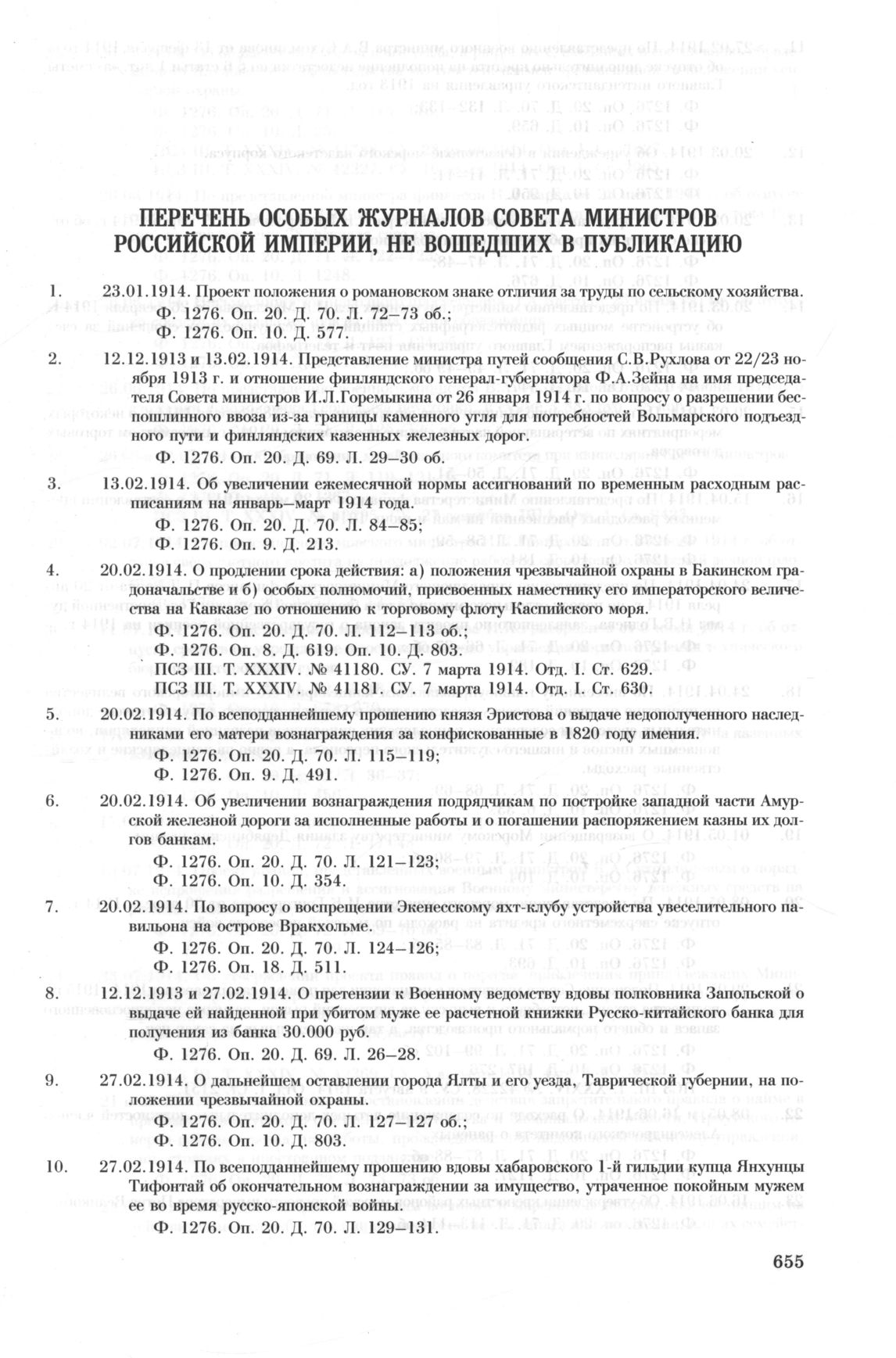 Перечень особых журналов Совета Министров Российской империи, не во...
