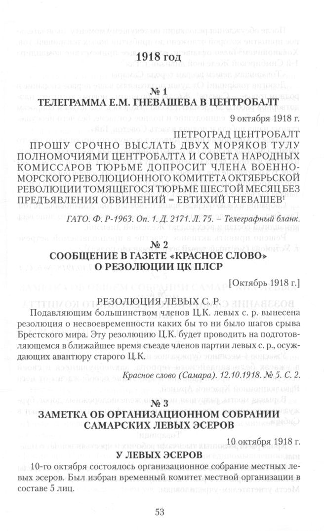 Подавляющим большинством членов Ц.К. левых с. р. вынесена резолюция о несвоевременности каких бы то ни было шагов срыва Брестского мира. Эту резолюцию Ц.К. будет проводить на подготовляющемся в ближайшее время съезде членов партии левых с. р., осуждающих авантюру старого Ц.К.