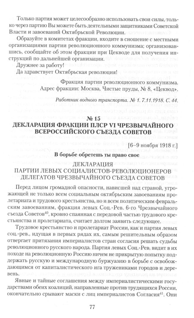 ДЕКЛАРАЦИЯ ФРАКЦИИ ПЛСР VI ЧРЕЗВЫЧАЙНОГО ВСЕРОССИЙСКОГО СЪЕЗДА СОВЕТОВ