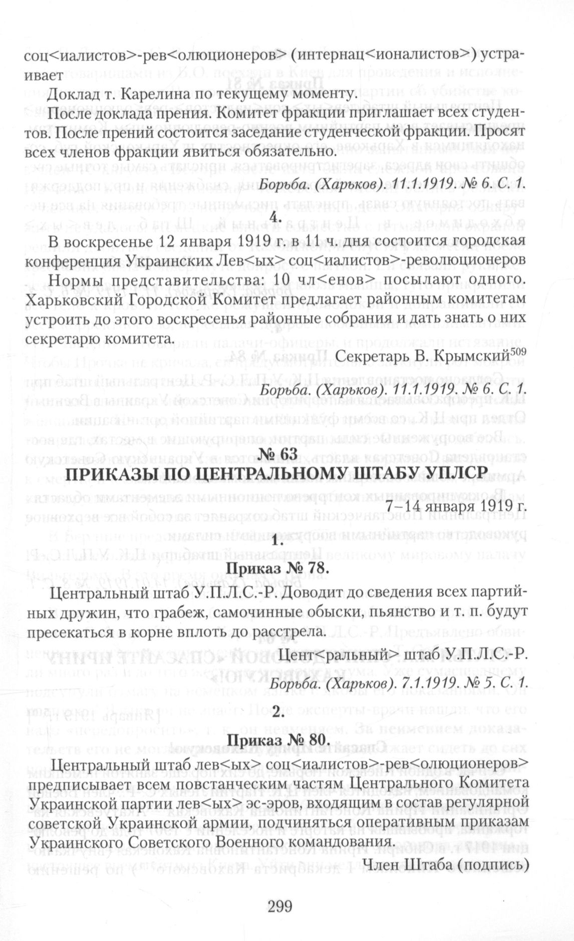 Приказы по Центральному штабу УПЛСР. 7-14 января 1919 г. Приказы № 80, № 81