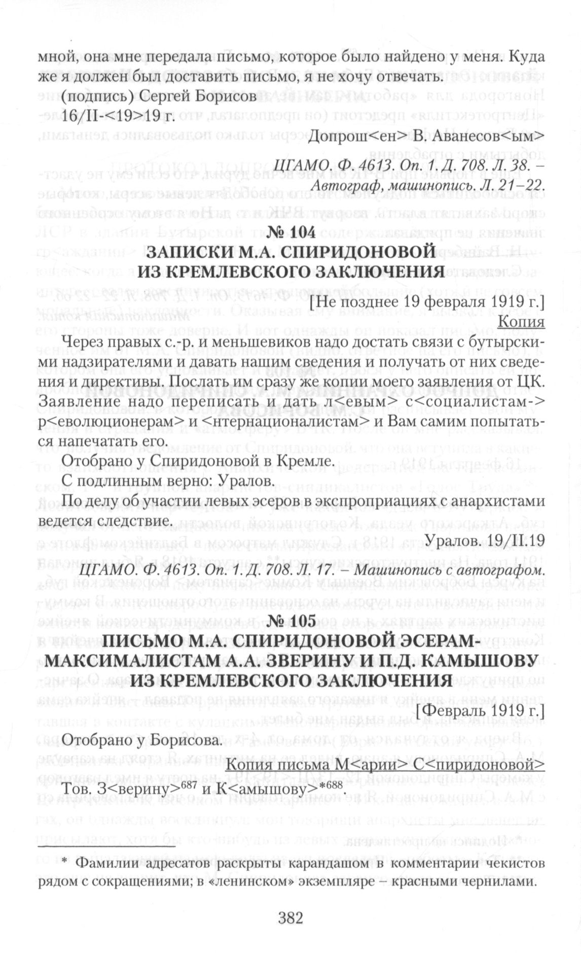Через правых с.-р. и меньшевиков надо достать связи с бутырскими надзирателями и давать нашим сведения и получать от них сведения и директивы. Послать им сразу же копии моего заявления от ЦК. Заявление надо переписать и дать л<евым> с<социалистам-> р<еволюционерам> и <нтернационалистам> и Вам самим попытать- ся напечатать его.