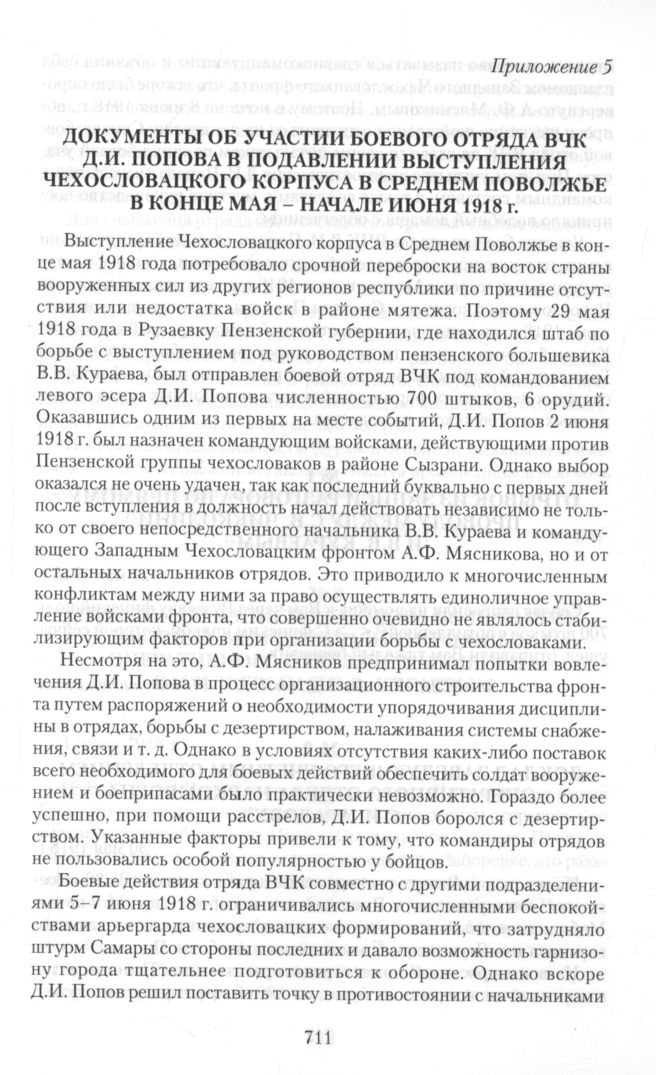 ДОКУМЕНТЫ ОБ УЧАСТИИ БОЕВОГО ОТРЯДА ВЧК Д.И. ПОПОВА В ПОДАВЛЕНИИ ВЫСТУПЛЕНИЯ ЧЕХОСЛОВАЦКОГО КОРПУСА В СРЕДНЕМ ПОВОЛЖЬЕ В КОНЦЕ МАЯ - НАЧАЛЕ ИЮНЯ 1918 г.