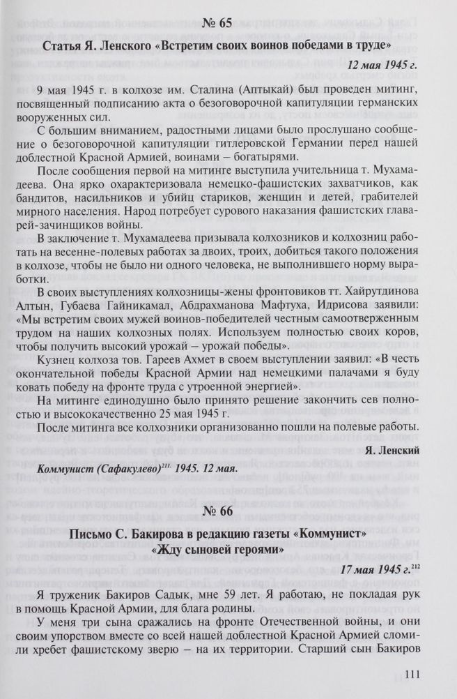 Статья Я. Ленского «Встретим своих воинов победами в труде». 12 мая 1945 г. // Коммунист (Сафакулево). 1945. 12 мая.