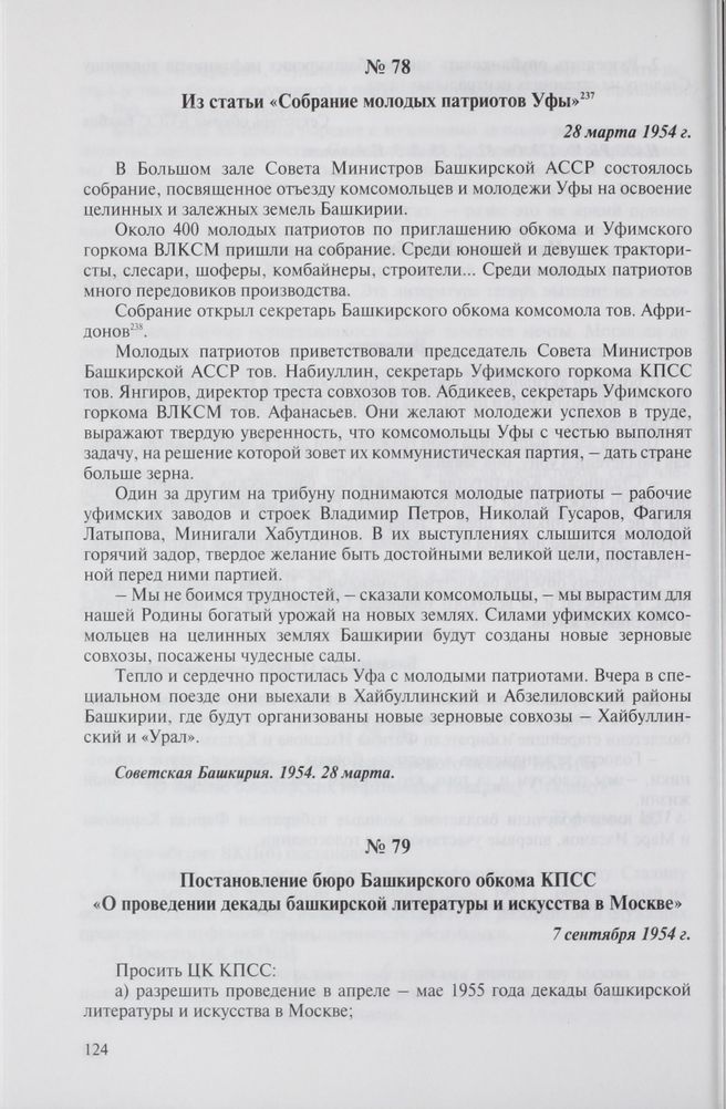 Постановление бюро Башкирского обкома КПСС «О проведении декады башкирской литературы и искусства в Москве». 7 сентября 1954 г.