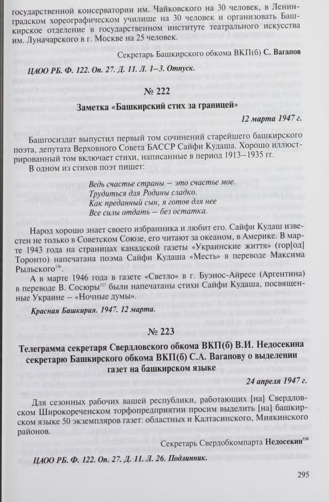 Заметка «Башкирский стих за границей». 12 марта 1947 г. // Красная Башкирия. 1947. 12 марта.