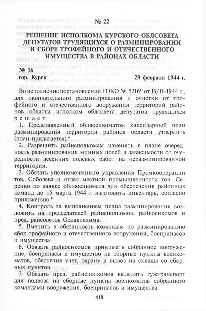 Главная Республики, области и города СССР в годы Великой Отечественной войны Суровая правда войны. Курская область в период Великой Отечественно... Суровая правда войны. Ч. III. 1943-1945 гг. на Курской земле в доку... Решение исполкома Курского облсовета депутатов трудящихся о размини...