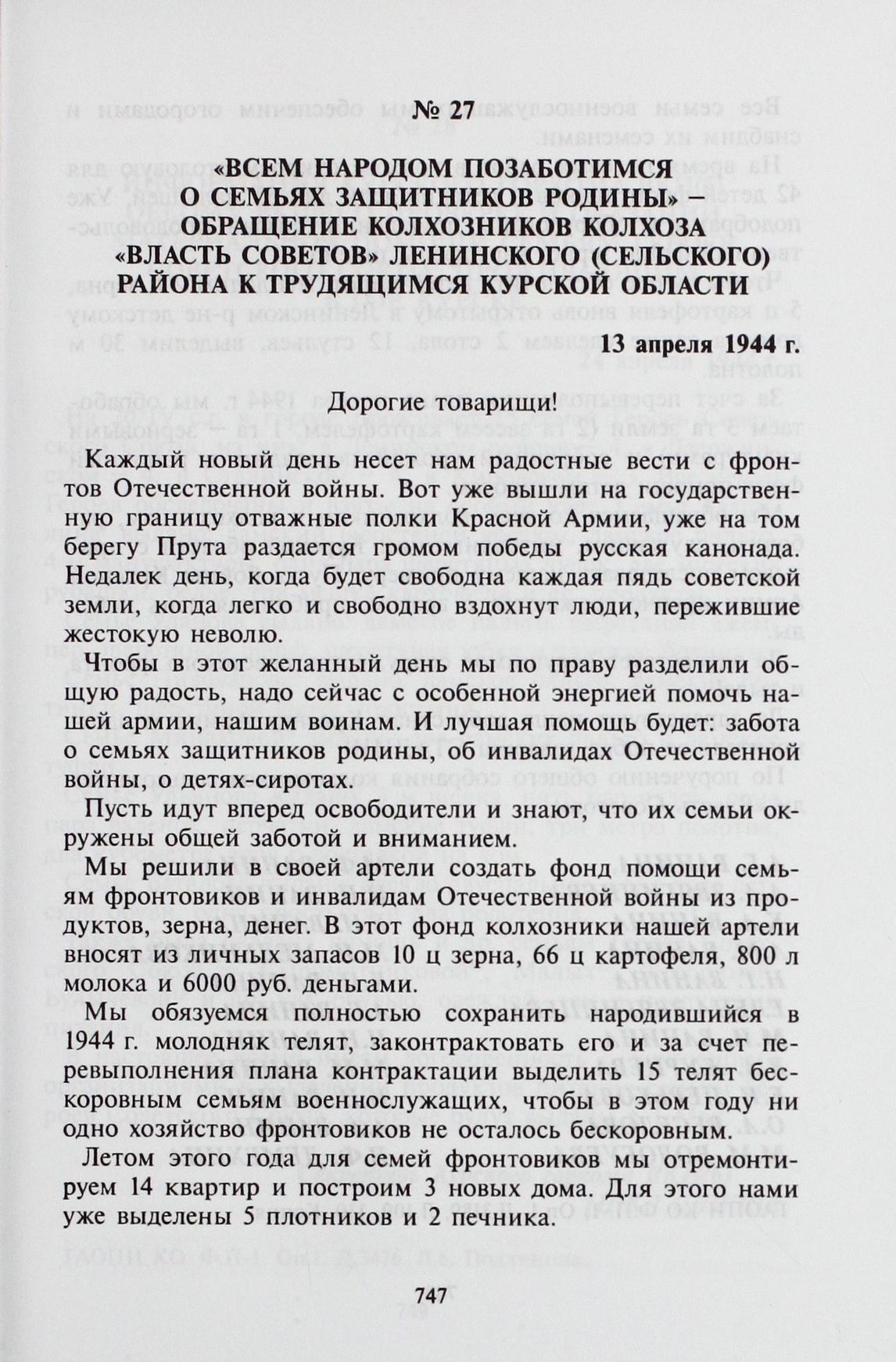 Главная Республики, области и города СССР в годы Великой Отечественной войны Суровая правда войны. Курская область в период Великой Отечественно... Суровая правда войны. Ч. III. 1943-1945 гг. на Курской земле в доку... «Всем народом позаботимся о семьях защитников Родины» - обращение к...
