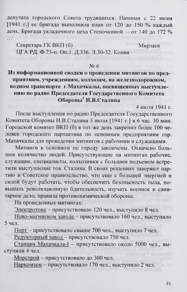 Главная Республики, области и города СССР в годы Великой Отечественной войны Трудовой подвиг народов Дагестана в годы Великой Отечественной войны Трудовой подвиг народов Дагестана в годы Великой Отечественной войн... Из информационной сводки о проведении митингов по предприятиям, учр...