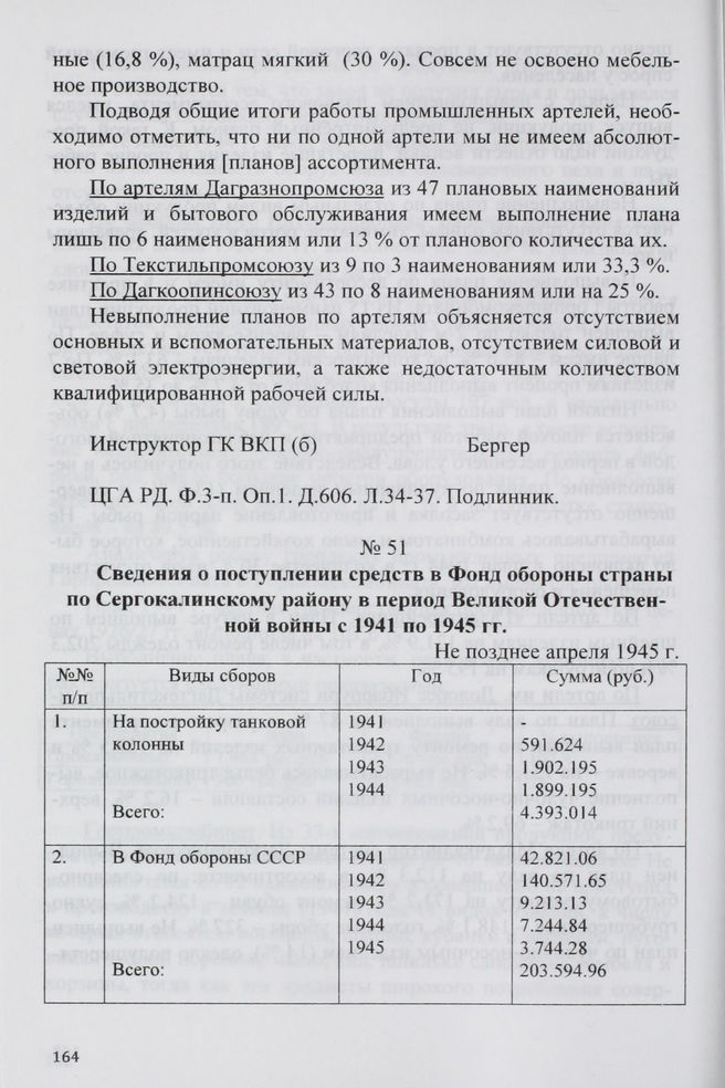 Сведения о поступлении средств в Фонд обороны страны по Сергокалинскому району в период Великой Отечественной войны с 1941 по 1945 гг. Не позднее апреля 1945 г. // ЦГА РД. Ф. 100-п. Оп. 1. Д. 100. Л. 7. Рукопись. Подлинник.