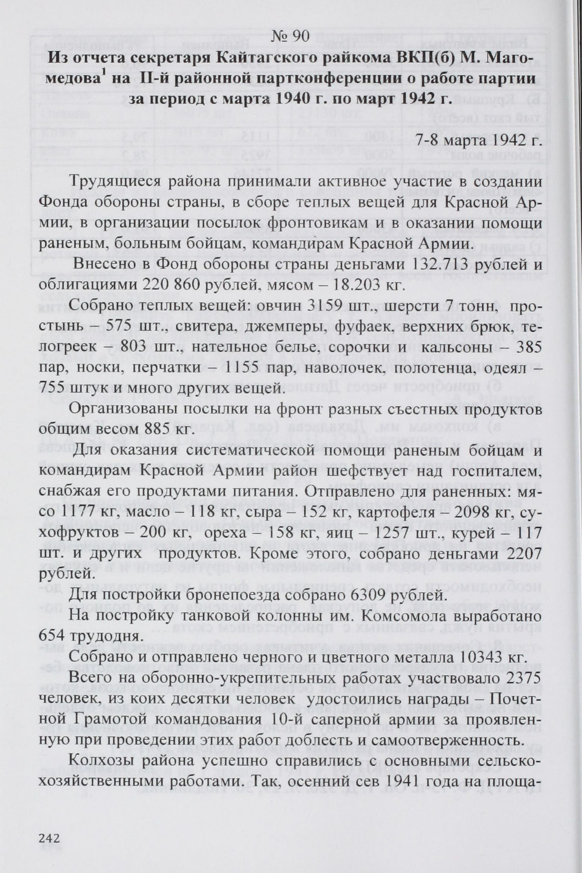 Главная Республики, области и города СССР в годы Великой Отечественной войны Трудовой подвиг народов Дагестана в годы Великой Отечественной войны Трудовой подвиг народов Дагестана в годы Великой Отечественной войн... Из отчета секретаря Кайтагского райкома ВКП(б) М. Магомедова на II-...