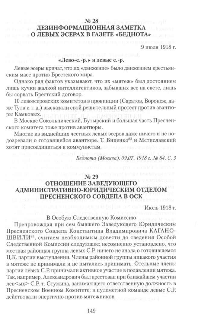 Партия левых социалистов-революционеров. Документы и материалы. 1917–1925 гг. : в 3 т. Т. 2. Ч. 2. Июль–октябрь 1918 г. — М. : РОССПЭН, 2015.