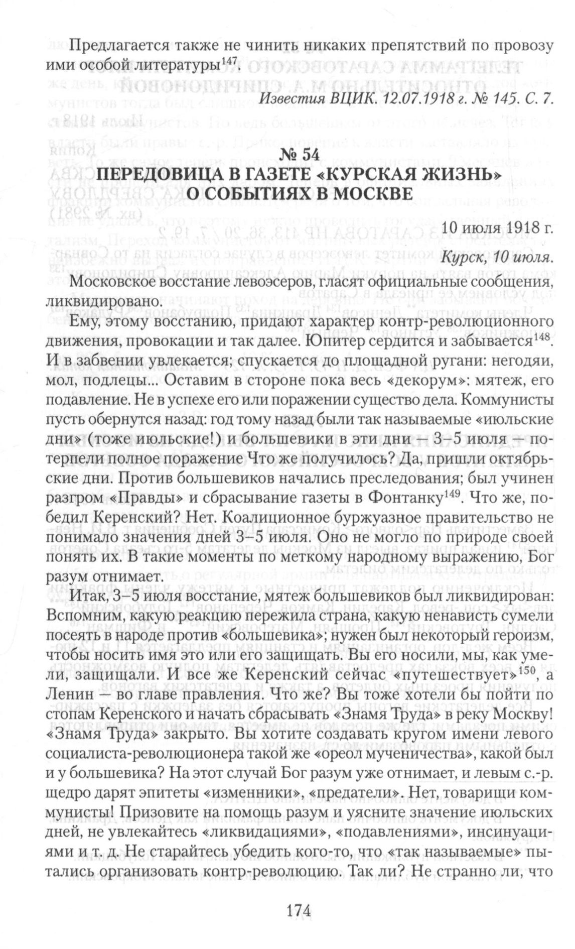 Передовица в газете «Курская жизнь» о событиях в Москве. 10 июля 1918 г.