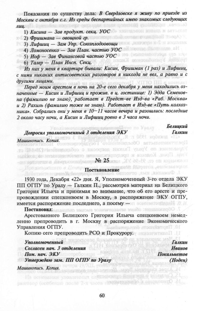 Белицкий Григорий Ильич. Постановление