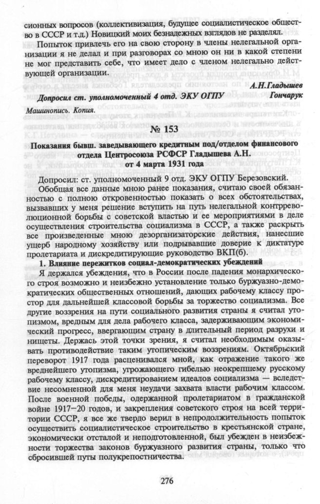 Гладышев Александр Николаевич. Показания бывш. заведывающего кредитным под/отделом финансового отдела Центросоюза РСФСР Гладышева А.Н. от 4 марта 1931 года // ЦА ФСБ РФ. Рукопись.
