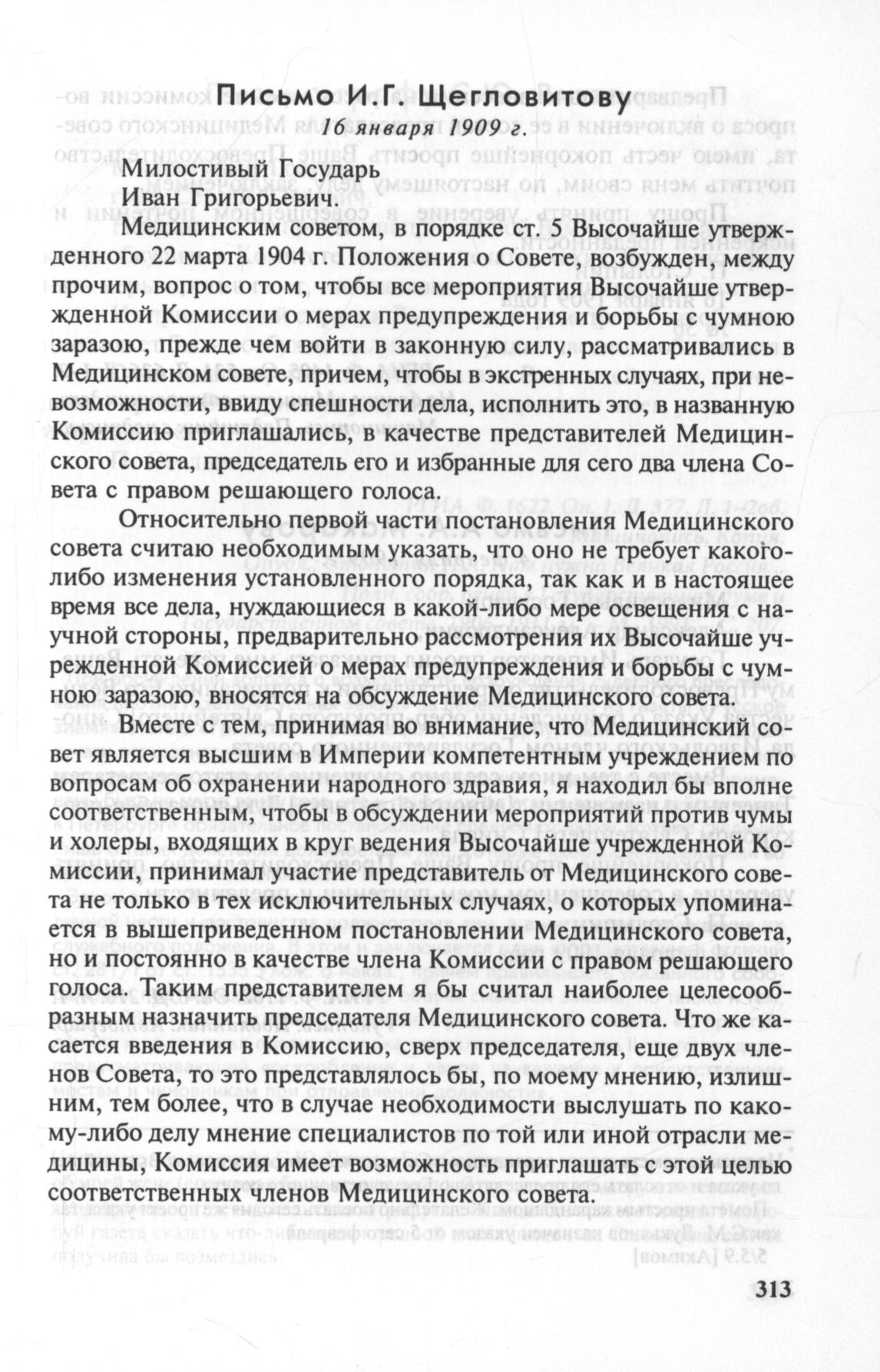 Письмо И.Г. Щегловитову, 16 января 1909 г.