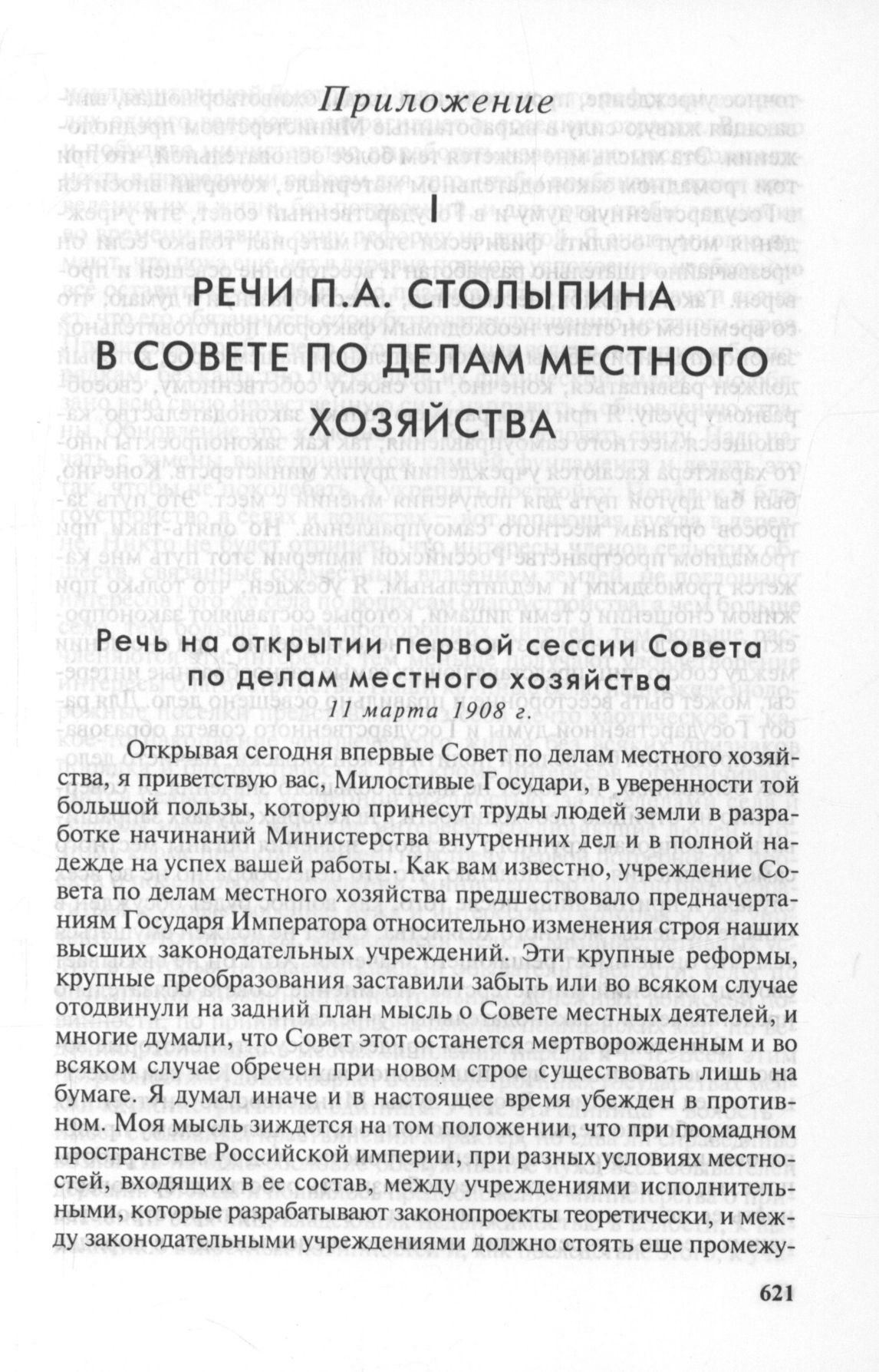 Речь на открытии первой сессии Совета по делам местного хозяйства, 11 марта 1908 г. // Журнал заседания общего присутствия Совета по делам местного хозяйства. 11 марта 1908 г. - СПб., 1908. - С. 2-4.