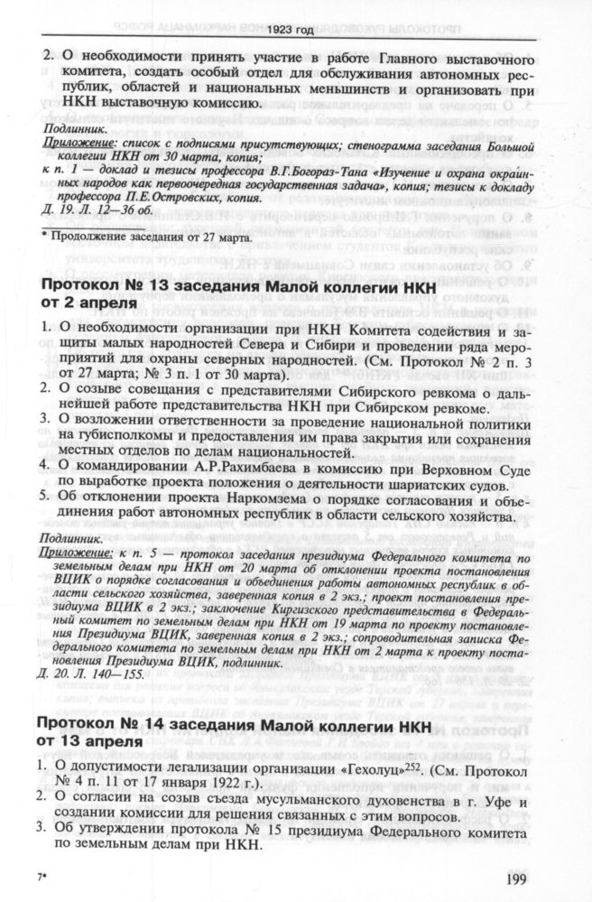 Протокол № 13 заседания Малой коллегии НКН от 2 апреля 1923 г. // ГА РФ. Ф. Р-1318. Oп. 1. Д. 20. Л. 140-155.