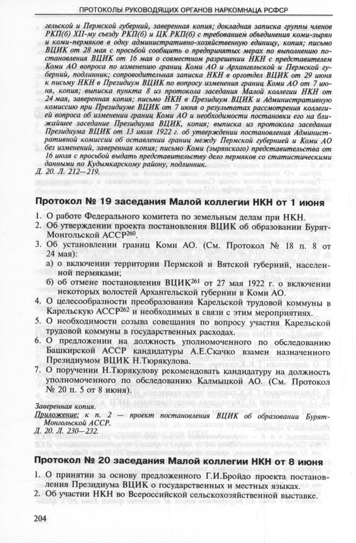 Протокол № 19 заседания Малой коллегии НКН от 1 июня 1923 г. // ГА РФ. Ф. Р-1318. Oп. 1. Д. 20. Л. 230-232.