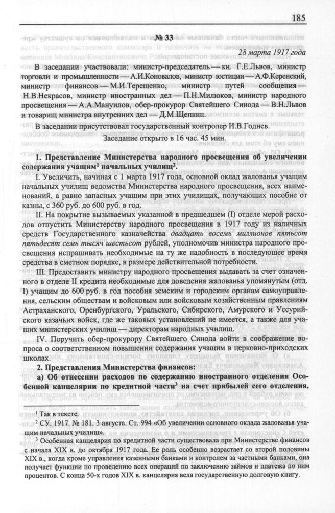 Журнал заседания Временного правительства № 33. 28 марта 1917 года // ГА РФ. Ф. 1779. Oп. 2. Д. 1. Ч. 1. Л. 133—135. Типограф. Подлинник.
