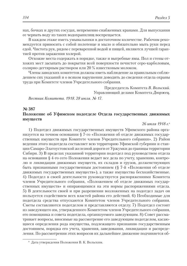 Положение об Уфимском подотделе Отдела государственных движимых имуществ. 26 июля 1918 г. // Вестник Комитета. 1918. 31 июля. № 19.