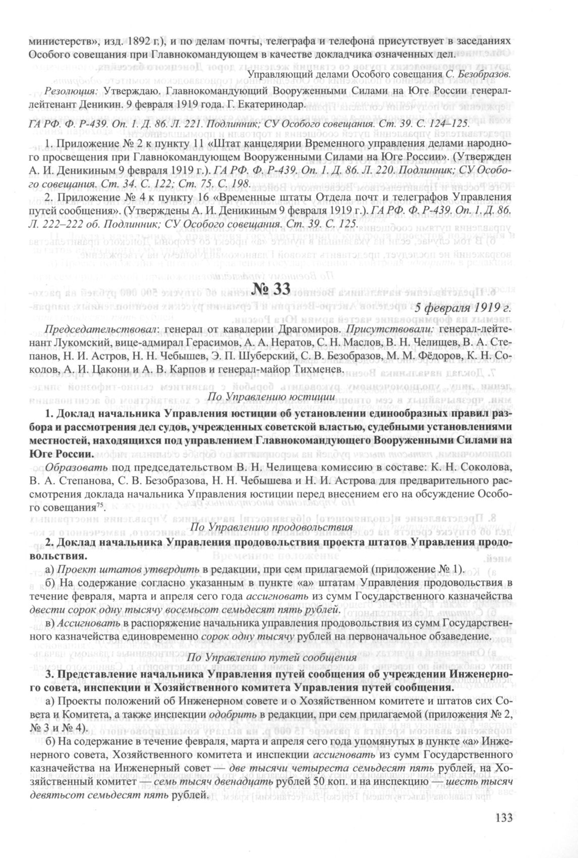 Приложение № 2 к журналу № 32 заседания Особого совещания при Главнокомандующем вооруженными силами на Юге России А.И. Деникине. 1 февраля 1919 г. // ГА РФ. Ф. P-439. Оп. 1. Д. 86. Л. 220. Подлинник; СУ Особого совещания. Ст. 34. С. 122; Ст. 75. С. 198.