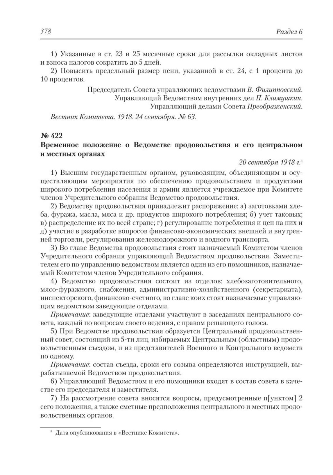 Временное положение о Ведомстве продовольствия и его центральном и местных органах. 20 сентября 1918 г. // Вестник Комитета. 1918. 20 сентября. № 61.