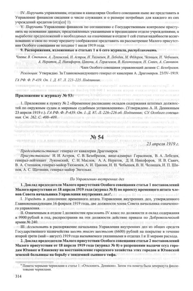 Приложение к журналу № 53 заседания Особого совещания при Главнокомандующем вооруженными силами на Юге России А.И. Деникине. 19 апреля 1919 г. // ГА РФ. Ф. P-439. Оп. 1. Д. 87. Л. 226-226 об. Подлинник; СУ Особого совещания. Ст. 262. С. 408-409.