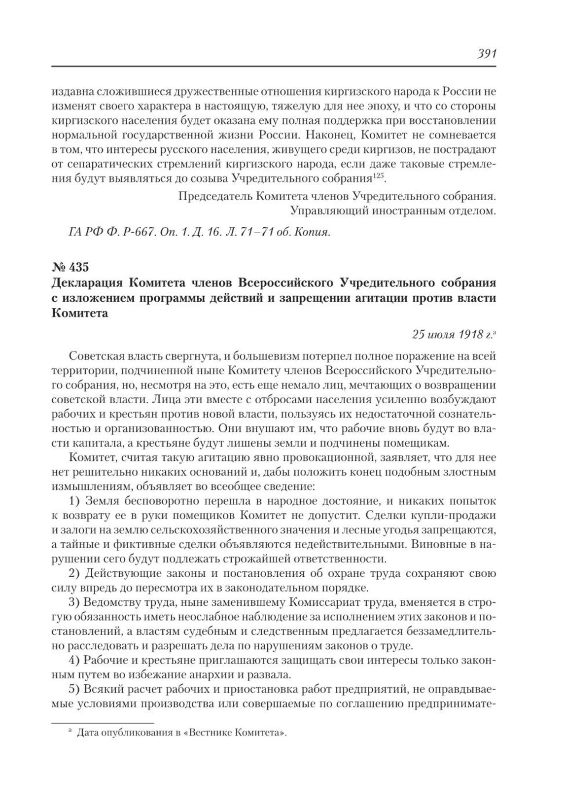 Декларация Комитета членов Всероссийского Учредительного собрания с изложением программы действий и запрещении агитации против власти Комитета. 25 июля 1918 г. // ГА РФ. Ф. Р-749. Оп. 1. Д. 1. Л. 29 об. — 30 об.; Ф. Р-9550. Оп. 11. Д. 15. Л. 1. Типограф. экз.; Вестник Комитета. 1918. 25 июля. № 14.; Россия антибольшевистская. Из белогвардейских и эмигрантских архивов. М., 1995. С. 27–29.