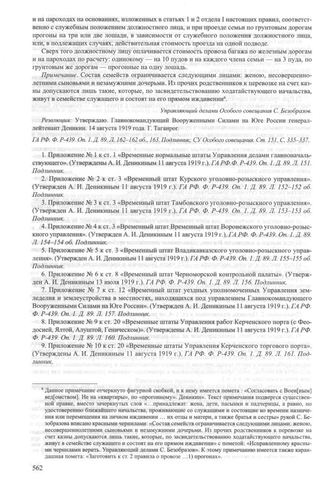Приложение № 9 к журналу № 83 заседания Особого совещания при Главнокомандующем вооруженными силами на Юге России А.И. Деникине. 30 июля 1919 г. // ГА РФ. Ф. P-439. Оп. 1. Д. 89. Л. 160. Подлинник.