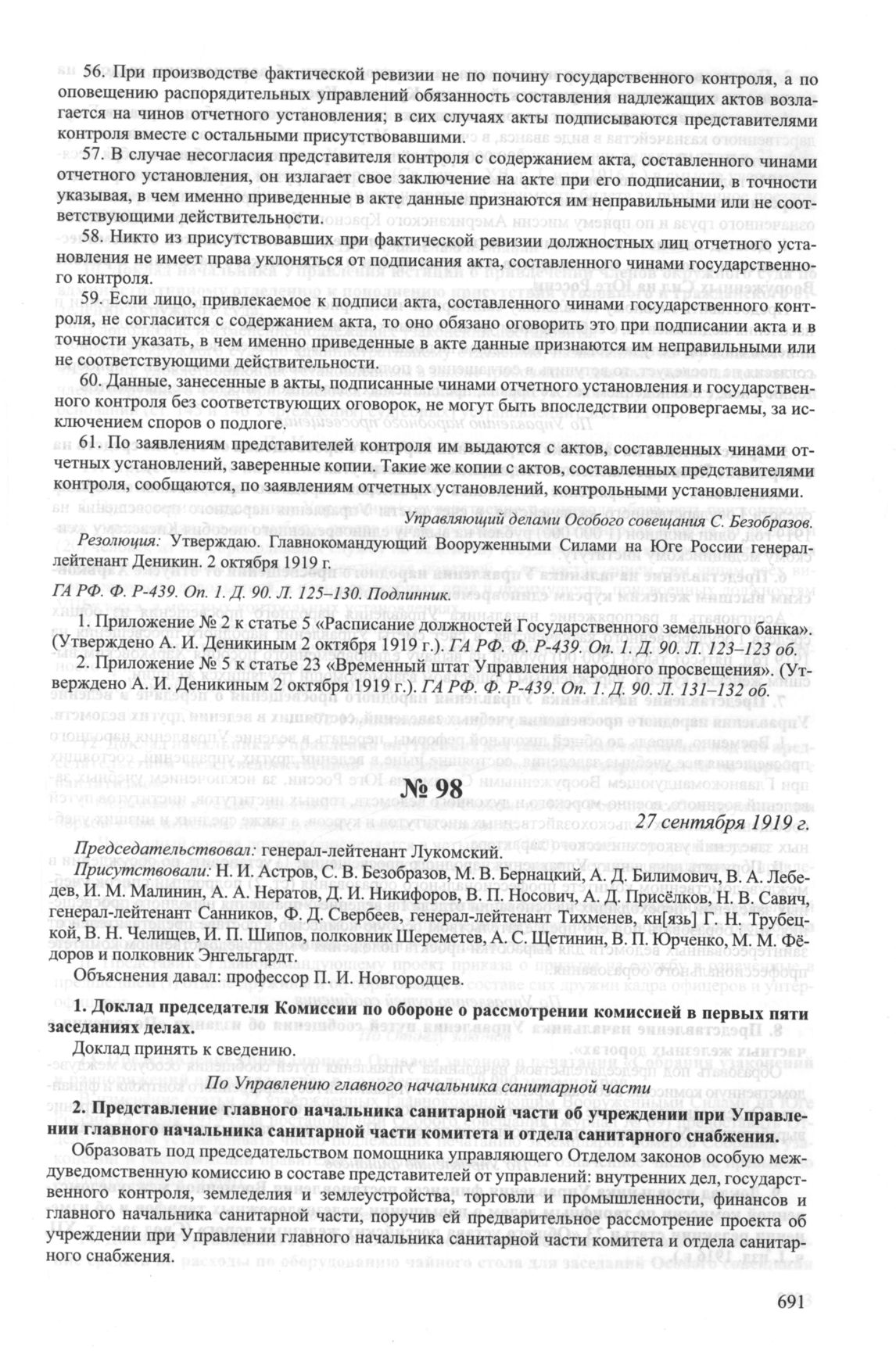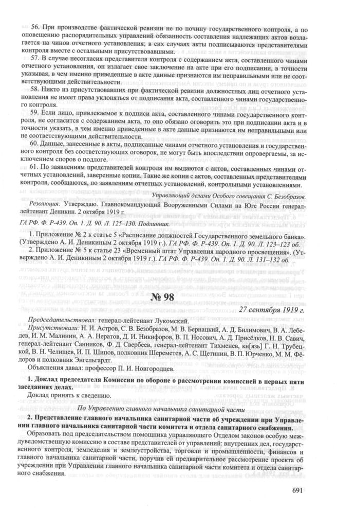 Приложение № 5 к журналу № 97 заседания Особого совещания при Главнокомандующем вооруженными силами на Юге России А.И. Деникине. 24 сентября 1919 г. // ГА РФ. Ф. P-439. Оп. 1. Д. 90. Л. 131-132 об.