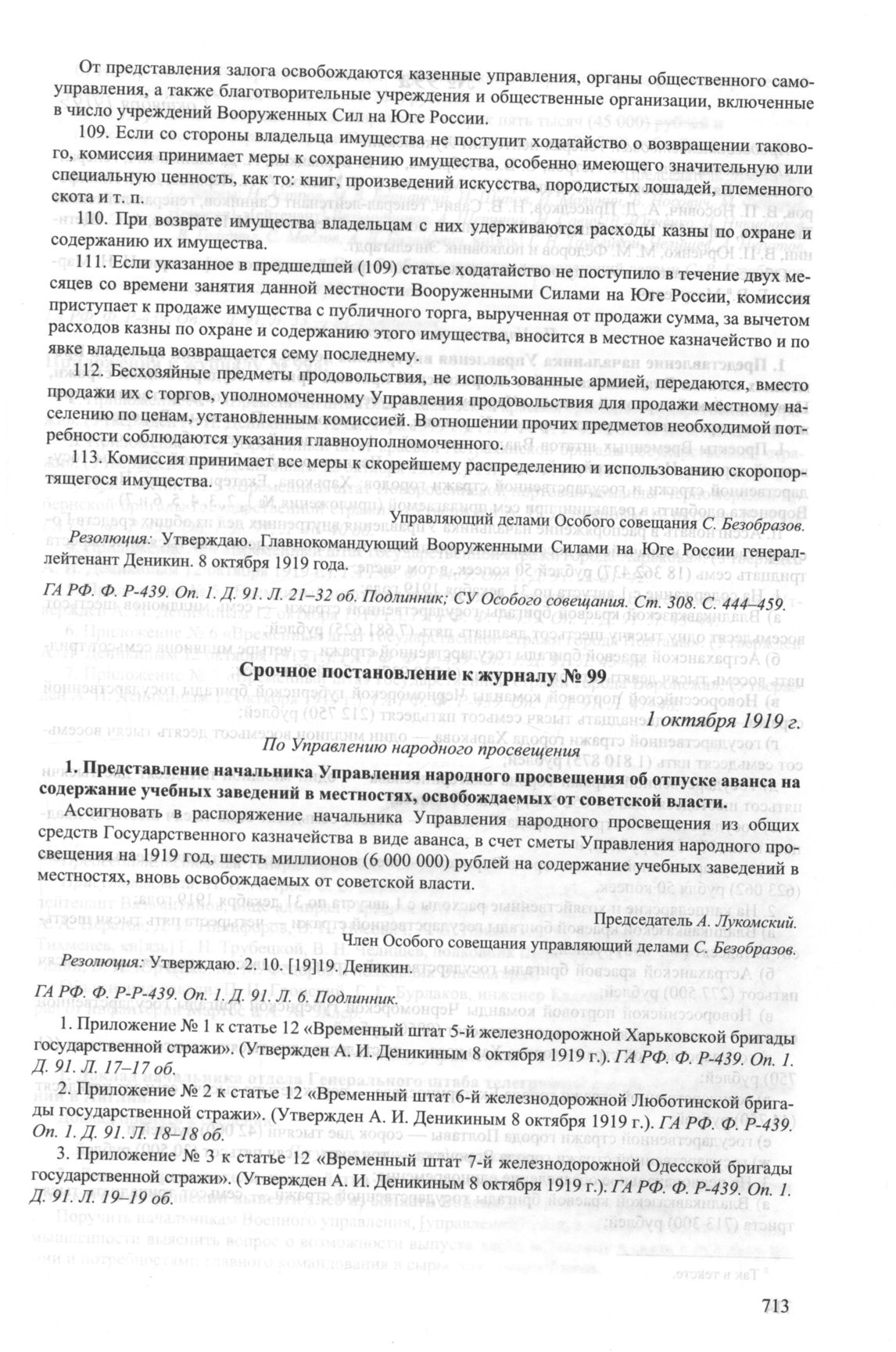 Приложение № 2 к журналу № 99 заседания Особого совещания при Главнокомандующем вооруженными силами на Юге России А.И. Деникине. 1 октября 1919 г. // ГА РФ. Ф. Р-439. Оп. 1. Д. 91. Л. 18-18 об.