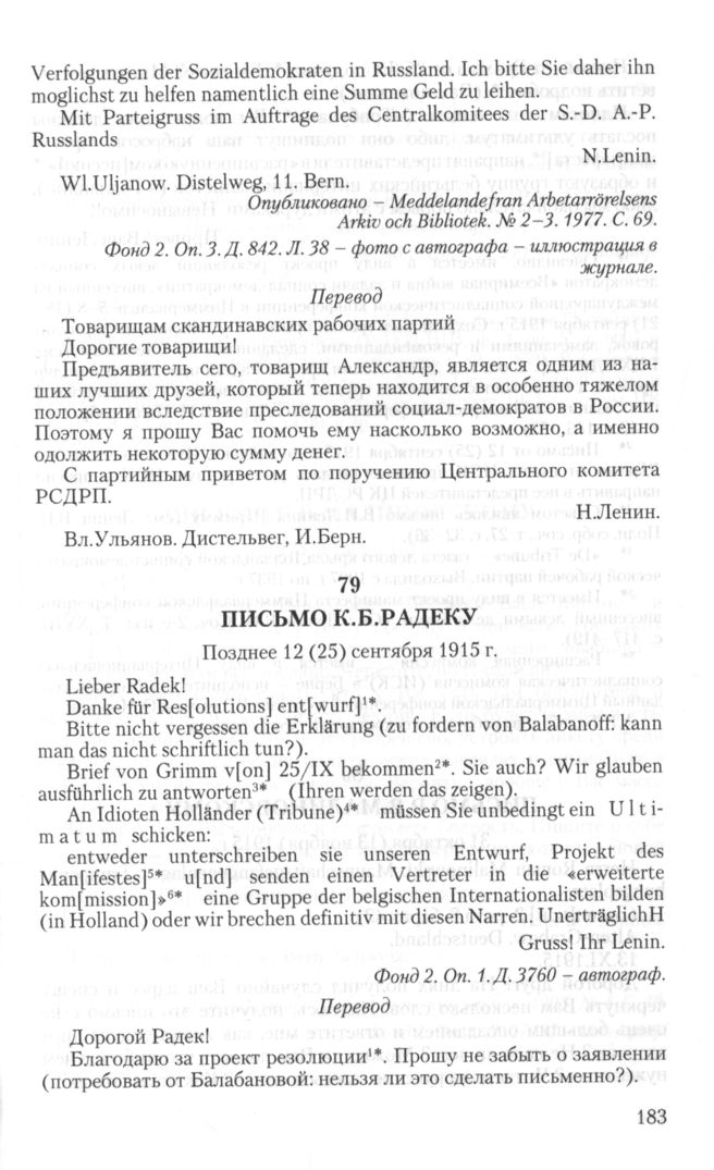 - b. ↑↑ Письмо от 12 (25) сентября 1915 г. не найдено. Известно, что в нем Р.Гримм от имени ИСК предлагал создать расширенную ИСК и просил направить в нее представителей ЦК РСДРП.